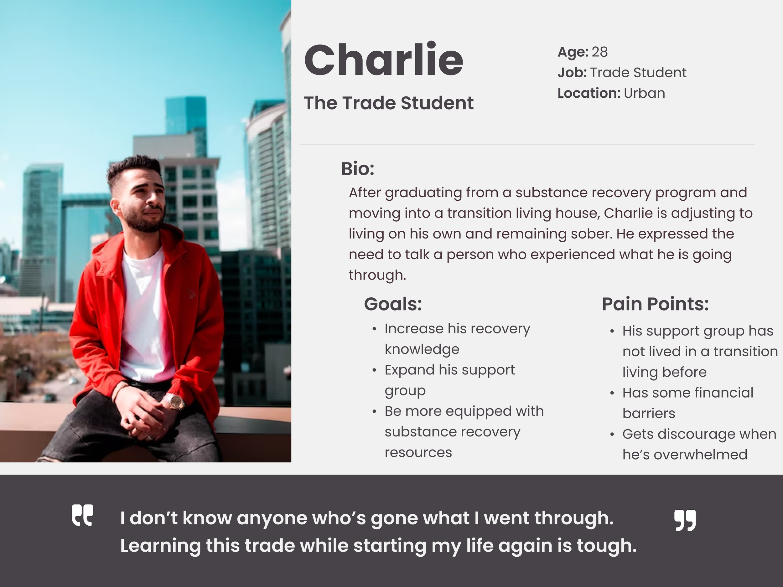 In order to fully understand the users and their pain points, I used user research data provided by the client to dive deep into what users are experiencing through two personas.